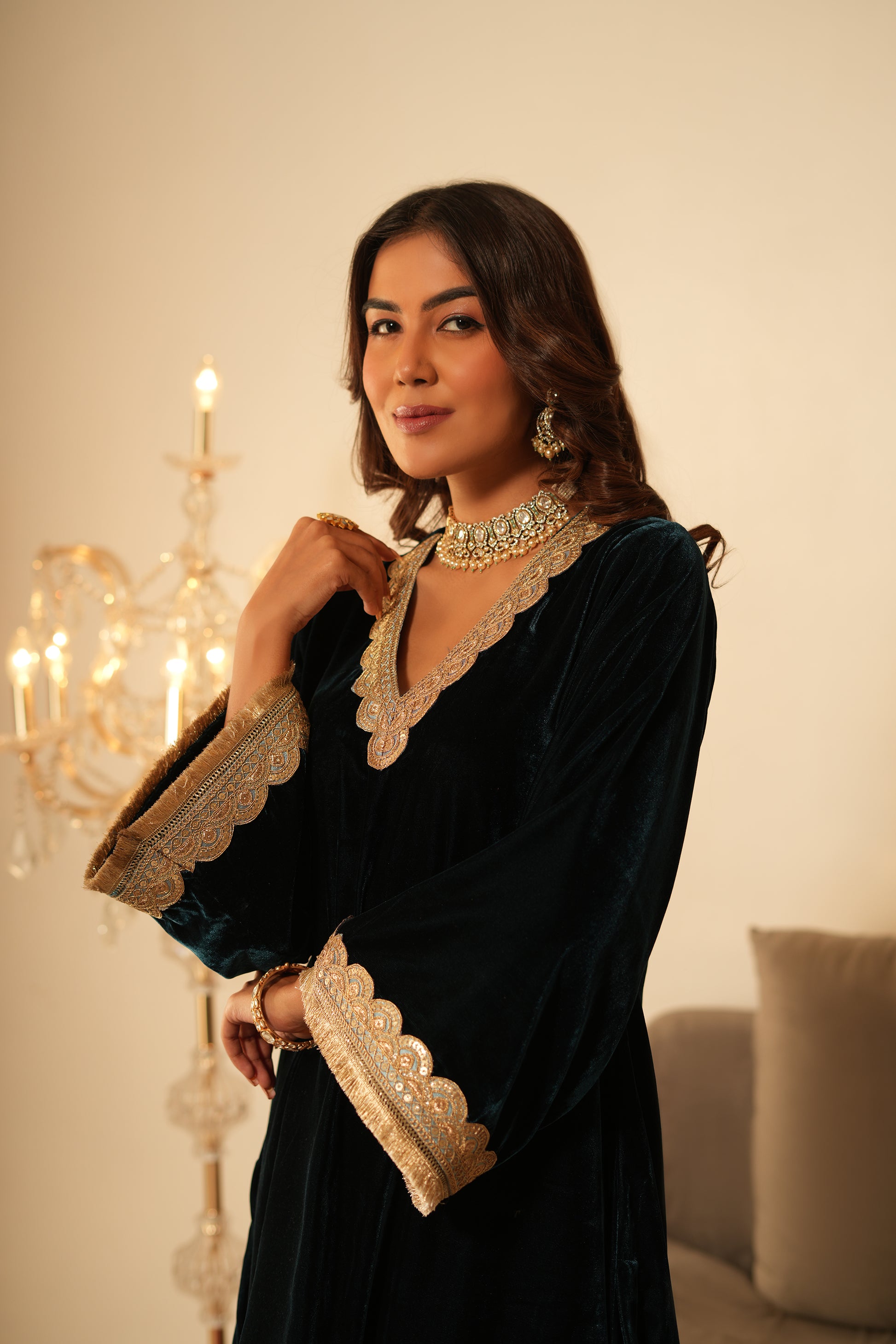 This Blue velvet Co-ord Set stands out and make you shine like a moon. NIDA is made keeping in mind the simplicity and detailing which makes it presence felt be it festival or wedding. Looks chique and smart at the same time.